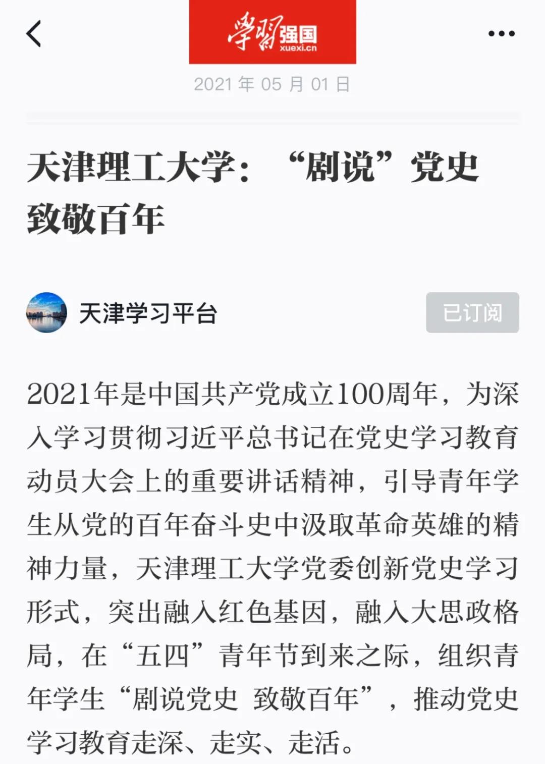 为深入学习贯彻习近平总书记在党史学习教育动员大会上的重要讲话精神,引导青年学生从党的百年奋斗史中汲取革命英雄的精神力量,米兰milan官方网站党委创新党史学习形式,突出融入红色基因,融入大思政格局,在“五四”青年节到来之际,组织青年学生“剧说党史 致敬百年”,推动党史学习教育走深、走实、走活。《学习强国》刊发了活动情况,全文如下: