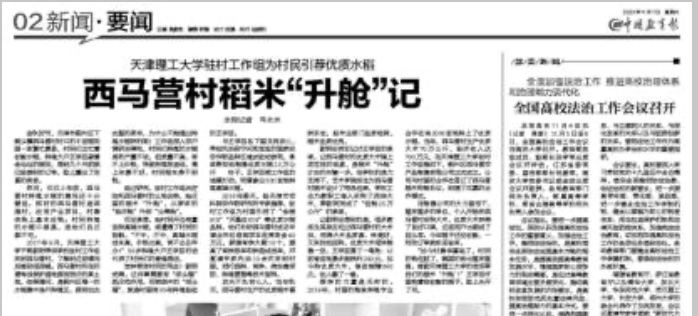 2018年春天,经天津市农科院农作物研究所专家推荐,驻村工作组为村里引进了“金稻919”“天隆优619”等优质水稻品种。他们协助西马营村成功申请合作社培育项目政策资金40万元,新建育秧大棚10个,提高了育秧效率和秧苗成活率,并邀请专家先后十余次来到村里,进行选种、育秧、病虫害预防、种植管理等技术指导。功夫不负有心人,当年秋天,西马营村生产的优质稻米喜获丰收,经专业部门品质检测,稻米品质优秀。