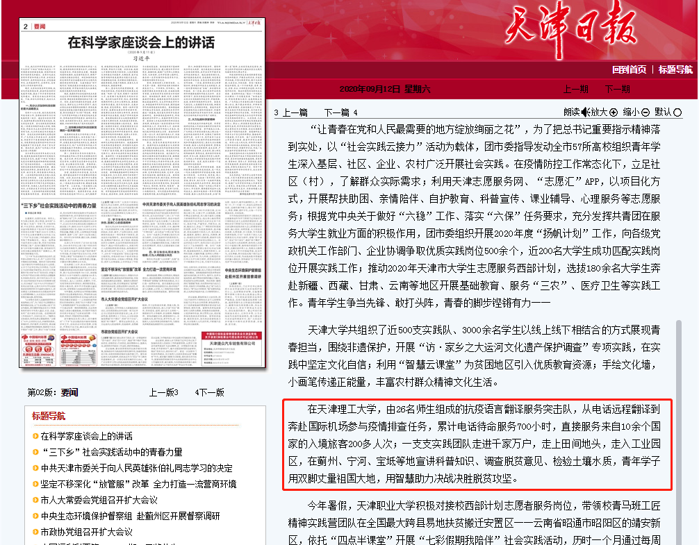近日,天津日报对米兰疫情期间的语言翻译服务突击队及社会实践团队下乡进行了报道,全文如下: