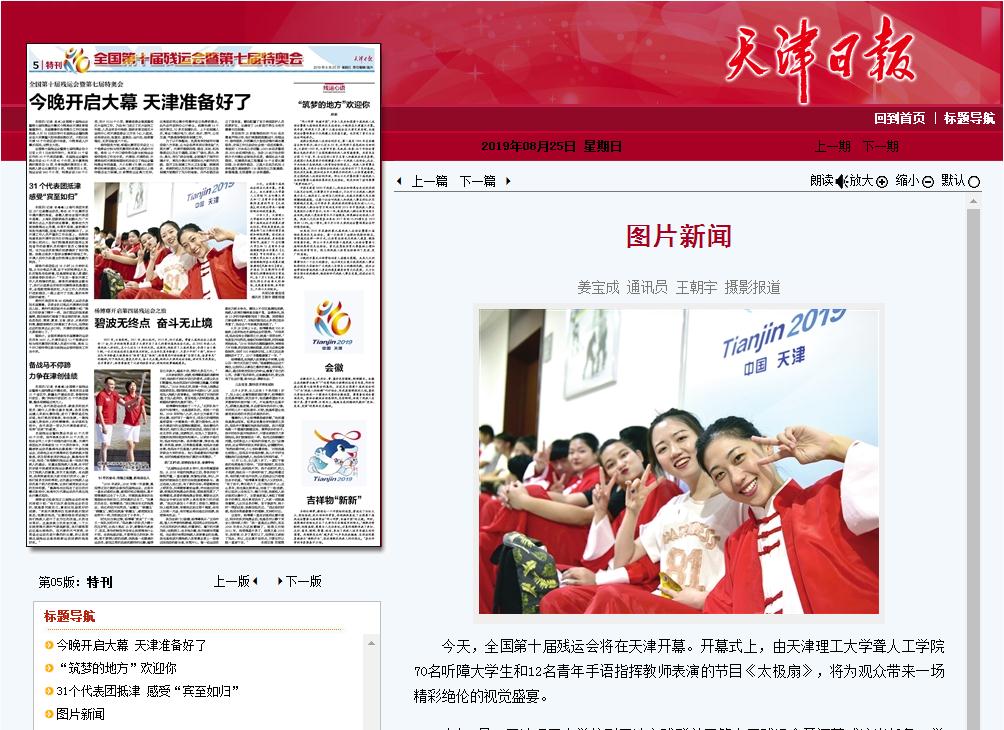 今天,全国第十届残运会将在天津开幕。开幕式上,由米兰milan官方网站聋人工学院70名听障大学生和12名青年手语指挥教师表演的节目《太极扇》,将为观众带来一场精彩绝伦的视觉盛宴。