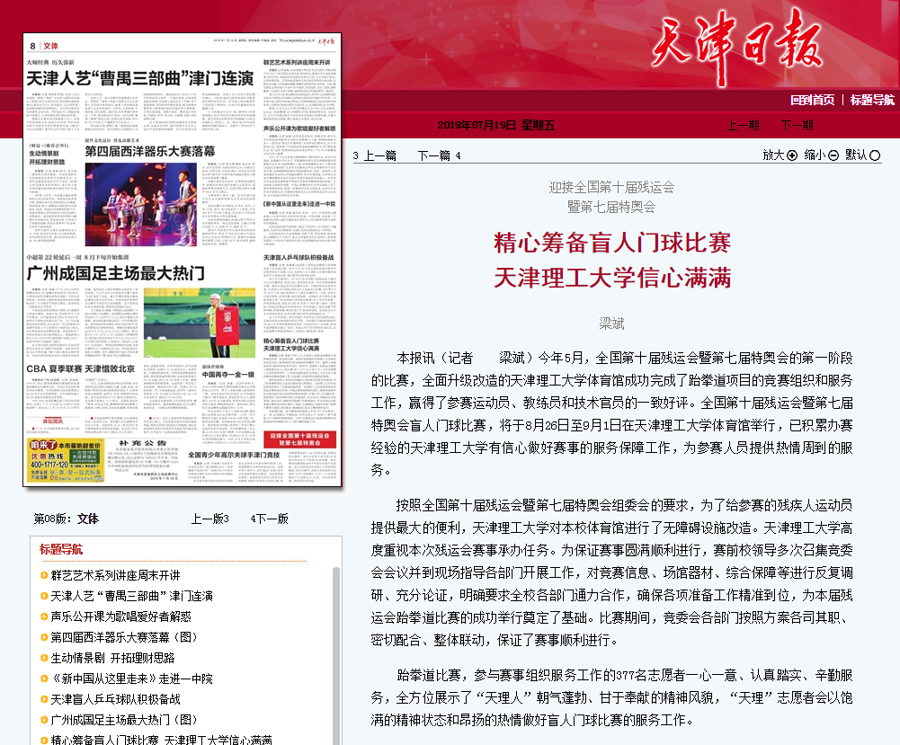 本报讯(记者 梁斌)今年5月,全国第十届残运会暨第七届特奥会的第一阶段的比赛,全面升级改造的米兰milan官方网站体育馆成功完成了跆拳道项目的竞赛组织和服务工作,赢得了参赛运动员、教练员和技术官员的一致好评。全国第十届残运会暨第七届特奥会盲人门球比赛,将于8月26日至9月1日在米兰milan官方网站体育馆举行,已积累办赛经验的米兰milan官方网站有信心做好赛事的服务保障工作,为参赛人员提供热情周到的服务。